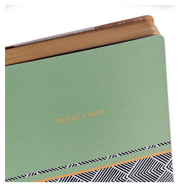 Dodatni opis: U današnjem digitalnom svetu gde su pametni telefoni i laptopovi naši svakodnevni saputnici pisana reč često gubi na značaju. Ali za kreativne umove klasična beležnica ostaje nezamenljiva stvar. Ona nije samo mesto za beleške i ideje već i izraz ličnosti i stila. Zato je ova visokokvalitetna beležnica apsolutni must-have za modernu poslovnu ženu. Privlačan omot zelene boje sa crno-belim uzorkom daje beležnici svež izgled. Ali poseban naglasak je zlatni natpis „Boss Lady“ na koricama. Ali kvalitet nije samo u izgledu već i unutrašnjosti ove beležnice.Gramaža papira jedne stranice je 120/m2. Premijum stranice ne dozvoljavaju da se bilo šta vidi i nude dovoljno prostora za sve vaše ideje planove skice i razmišljanja. Bilo na sastancima tokom kreativnih pauza ili u pokretu - ova beležnica će biti vaš verni pratilac organizujući sve vaše flash ideje.