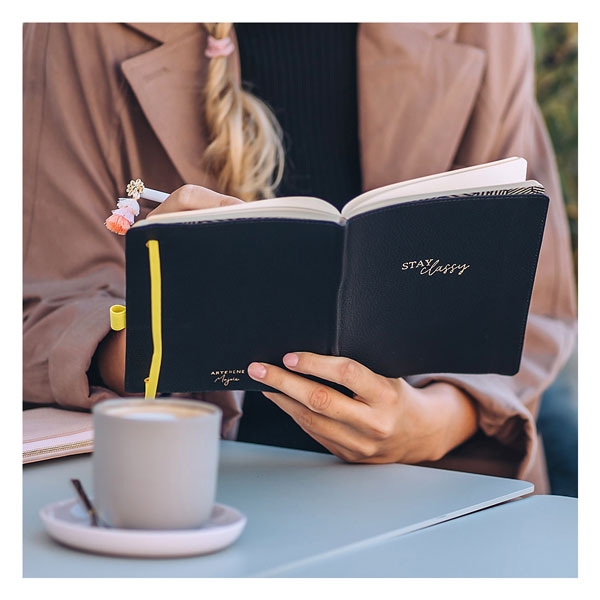 U sklopu agende je džep za umetanje za labave beleške na zadnjoj korici knjige.
