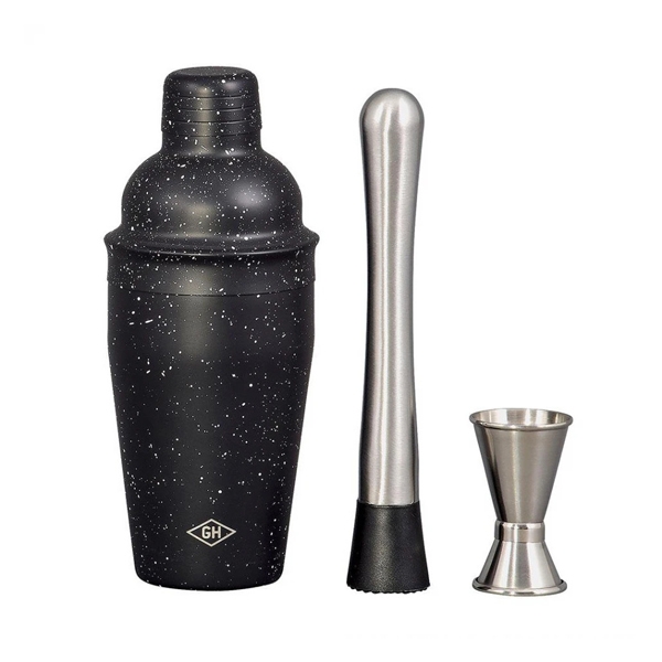 Dodatni opis: Set za koktele se sastoji od šejkera koji je napravljen od nerdjajućeg čelika merice od nerđajućeg čelika i tučka. Merica je dvostrana zapremine 15 ml i 30 ml. Zapremina šejkera je 500ml i omogućava pravljene najrazličitijih koktela. Za usitnjavanje (gnječenje) biljnih ili voćnih sastojaka koktela pobrinuće se tučak napravljen takodje od nerdjajućeg čelika. Kad imate ovakav šejker sa malo pažnje ljubavi i u dobrom društvu miksovanje koktela postaje prava umetnost.