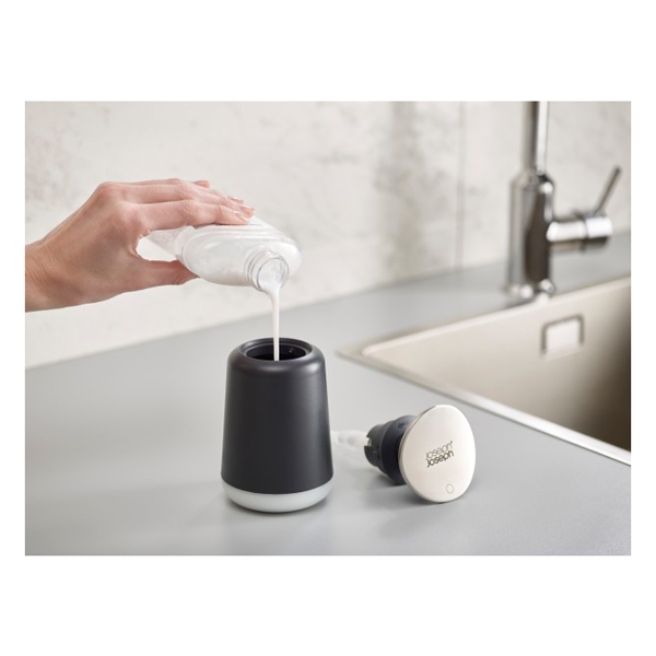 Dodatni opis: Presto Soap Dispenser je posuda za sapun koja ima veliku površinu za pritiskanje i možete je stisnuti dlanom i nadlakticom ukoliko su Vam ruke prljave. Uz minimalan kontakt ruke sa samom pumpicom lako ćete doći do željene količine sapuna. Dizajnirana je tako da ukoliko su Vam prljave ruke od spremanja recimo mesa ili ribe lako izbegnete prljanje posude. Gornji deo izradjen je od nerdjajućeg čelika. Izuzetno ju je lako čistiti i dopunjavati a pogodna je za sve vrste tečnog sapuna za ruke. Funkcionalnost ove pumpice upućuje da je pogodna ne samo za stambene prostore nego i za objekte poput restorana kafe barova hotela opšte uzevši svih prostora gde je velika frekvencija ljudi. Donji deo posude je transparentan te lako možemo videti kada je potrebno dopuniti sa sapunom.