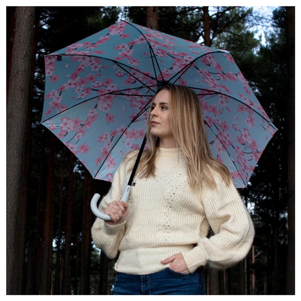 Dodatni opis: Ne dozvolite da vam kiša pokvari planove! Uzmite svoj originalni kišobran obujte čizme i izađite na ulice. Čak vas ni pljusak ni tornado ne mogu zaustaviti! Zahvaljujući izuzetno izdržljivom aluminijumskom okviru i rebrima od fiberglasa možete ga koristiti bez brige da c´e ga vetar polomiti. To je odličan način da se oduprete vremenskim uslovima! Da li ste jedna od onih osoba koje uvek imaju pune ruke torbi i pokvase se jer ne mogu da otvore kišobran? Ovaj veliki kišobran olakšava otvaranje ima automatski sistem otvaranja jednim pritiskom na dugme.Idealan je poklon za vašeg prijatelja koji voli cveće ili japansku kulturu. Voleće da ima šareni kišobran za one tmurne dane. Veoma izdržljiv aluminijumski okvir. Ručka sa gumiranom završnom obradom super udobna za držanje i prijatna na dodir. Ojačan okvir. UV zaštita. Automatski sistem otvaranja pritiskom na dugme. Klasično ručno zatvaranje.