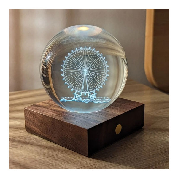 Dodatni opis: Kolekcija noćnog svetla Gingko Amber Cristal Ball dizajnirana je da vašem prostoru doda dašak magije i čuda. Poseduje 4 različita motiva svaki sa svojim jedinstvenim 3D laserski ugraviranim dizajnom: Galaksija: Očaravajuće zvezde i galaksije u svemiru će vašem prostoru dodati dašak kosmičke lepote i ostaviti vas očaranim. Sa visinom od 12 cm komadi kristalne kugle se nalaze na bazi od prirodnog orahovog drveta. Možete da prelazite između tri nivoa intenziteta svetlosti tako što ćete dodirnuti bakreno dugme na prednjoj strani postolja. Kristal je takođe poliran do sjaja koji reflektuje svetlost i stvara zapanjujući efekat u svakoj prostoriji. Baza od oraha je opremljena punjivom baterijom koja može održati vaš prostor osvetljen zapanjujućom svetlošću do 16 sati. USB-C port na zadnjoj strani omogućava lako punjenje.