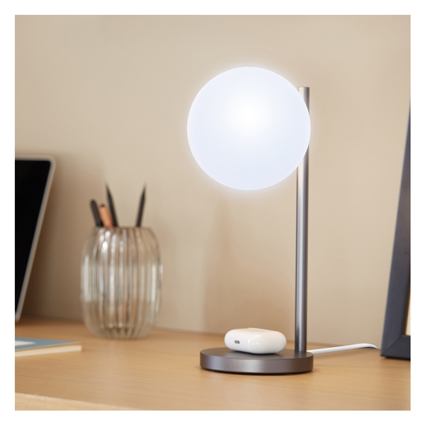 Dodatni opis: Bubble Lamp je savršeni dodatak za vaš radni sto noćni ormarić ili klub sto kombinujući funkciju elegantne LED lampe i bežične stanice za punjenje. Jednostavan za upotrebu može se potpuno kontrolisati jednim dodirom kako biste upalili/ugasili svetlo promenili boje LED-a i prilagodili svetlinu. Njegov bežični punjač diskretno je integrisan u bazu kako bi brzo punio pametne telefone i bežične slušalice kompatibilne s Qi standardom sa snagom do 15W. Bubble Lamp je opremljen sa 2 USB-C porta: jedan za punjenje lampe i drugi za punjenje vašeg laptopa ili drugih uređaja sa izlaznom snagom do 40W. To će vam omogućiti da lako centralizujete oblast punjenja i osvetljenja na svom radnom stolu. Dizajniran u aluminijumskom finišu i sa kuglom od opalnog stakla Bubble Lamp će dodati dašak modernosti i sofisticiranosti vašem enterijeru. Možete podesiti 7 različitih boja maksimalnog osvetljenja 150lm. Vreme punjenja baterije(USB-C/10-100W) je 3h a vreme trajanja 6h