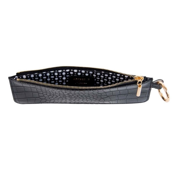 Dodatni opis: Veganski aterijal sa spoljašnjim izgledom kože i crno-bela tačkasta postava čuvaju vaše osnovne stvari savršeno zaštićenim i lako dostupnim pomoću sigurnog patentnog zatvarača koji se lako pokreće. Posebnu pogodnost čini i elegantna zlatna kopča za pričvršćivanje u torbi. Vaši mali pomoćnici su brzo pri ruci da spasu dan. Funkcionalni svakodnevni pratilac sa vrednošću prepoznavanja je sa ljubavlju i precizno ručno izrađen da bi postao vaš sledeći omiljeni komad.