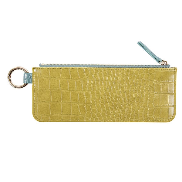 Dodatni opis: Futrola maslinaste boje sa svojim elegantnim krokodilskim dizajnom ne samo da je fina kao pernica za vaše olovke i pisaći pribor već i kao mala kozmetička torbica za ruževe senke za oči i nakit. Materijal sa spoljašnjim izgledom veganske kože i crno-bela postava savršeno štite vaše osnovne stvari. Posebno pogodnost je zlatna kopča pomoću koje pernicu-neseser možete pričvrstiti za torbu.