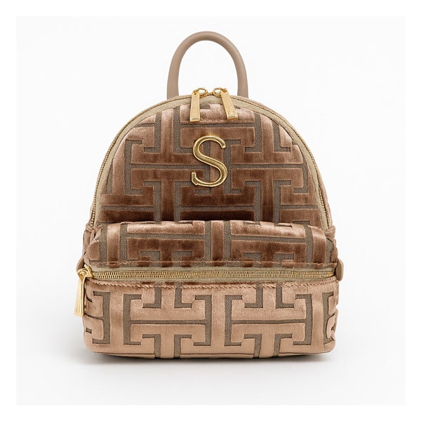 Dodatni opis: Podignite svoj svakodnevni stil uz mini ranac od somota Sorena luksuzni dodatak koji besprekorno spaja eleganciju sa funkcionalnošću. Izrađen od plišanog somota i ukrašen geometrijskim uzorkom grčkog ključa ovaj ranac je dizajniran da privuče pažnju. Zlatni metalni privezak u obliku slova „S“ dvostruko zatvaranje sa patentnim zatvaračem zlatni lanac za rame. Unutrašnjost: Potpuno obložena sa unutrašnjim džepom. Zatvaranje: Gornji patentni zatvarač. Sivo-bronzana boja sa metalnim akcentima. Savršen za svakodnevno nošenje ovaj upečatljiv komad dodaje sofisticiran dodir svakoj odeći.