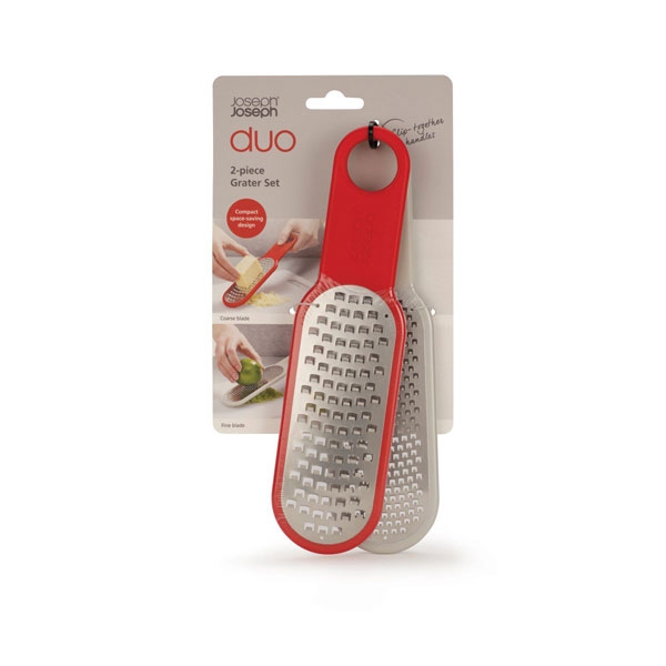 Dodatni opis: Duo Graters dizajnirana su tako da sa lakoćom zadovolje sve vaše potrebe za rendanjem. Rende koje se sastoji iz dva dela i svaki se može posebno koristiti. Dizajnirani su tako da se spojeni mogu lakše skladištiti u kuhinjskom prostoru. Omogućavaju brzo pripremanje hrane nebitno da li rendate sir i povrće ili aromatično bilje i začine. Dve različite vrste sečiva koriste se za pripremu srednje tvrdih sireva i povrća ili tvrdih sireva i citrusa. Obe oštrice su izradjene od nerdjajućeg čelika. Duo Graters -rende iz kolekcije Duo dizajnirano je tako da sa lakoćom zadovolji sve vaše potrebe za rendanjem dok uživate u pripremi hrane. Proizvod je pogodan za pranje u mašini za pranje posudja.