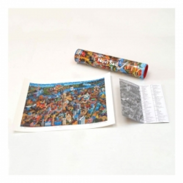 Dodatni opis: Uz svaku grafiku priložena je crno-bela verzija slike na kojoj su na engleskom jeziku nabrojani svi naslikani objekti pa se grafika može koristiti i kao turistički vodič.