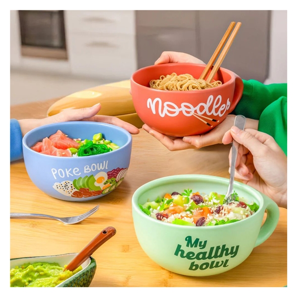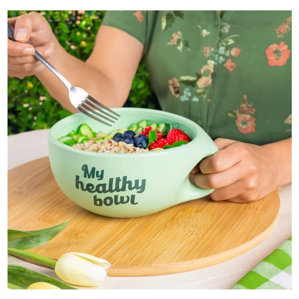 Dodatni opis: Ako vam je stalo do toga šta jedete ova činija za salatu sa porukom „moja zdrava činija“ postaće vaš najbolji saveznik za pripremu zdravih i ukusnih recepata. Zahvaljujući ergonomskoj dršci možete je udobno držati dok uživate u svojim omiljenim jelima bez straha od prosipanja. Savršena za one kojima je stalo ne samo do toga šta jedu već i kako uživaju u tome! Sa kapacitetom od 680 ml ova originalna činija za salatu je idealna za uživanje u hranljivim jelima bez osećaja gladi. Od energičnog doručka sa ovsenim pahuljicama i voćem do lagane večere sa povrćem i kinoom ova činija je savršene veličine da je napunite svime što volite. Može se prati u mikrotalasnoj pec´nici i mašini za pranje sudova.