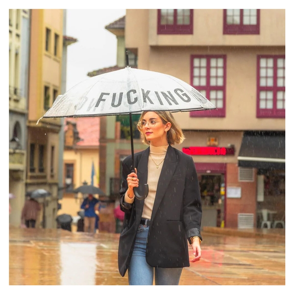 Dodatni opis: Ne dozvolite da vam kiša pokvari planove! Uzmite svoj originalni kišobran obujte čizme i krenite u osvajanje sveta po kiši. Sa svojom prozirnošću i porukom „jebena kiša“ dodaćete boju sivim danima a istovremeno ćete jasno staviti do znanja da mrzite loše vreme. Zahvaljujući veoma izdržljivom aluminijumskom okviru i rebrima od fiberglasa možete koristiti ovaj plavi kišobran bez brige da c´e ga vetar polomiti. Izdržac´e bez problema! Ovaj veliki kišobran ima automatski sistem otvaranja pomoću dugmeta tako da ako ste jedna od onih osoba koje uvek imaju pune ruke posla i pokvase se jer ne možete da otvorite kišobran... savršen je za vas. Veoma izdržljiv aluminijumski okvir. Ručka sa gumiranom završnom obradom super udobna za držanje i prijatna na dodir. Ojačan okvir. UV zaštita. Automatski sistem otvaranja pritiskom na dugme. Klasično ručno zatvaranje.