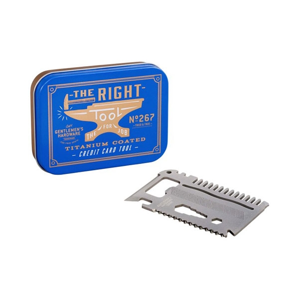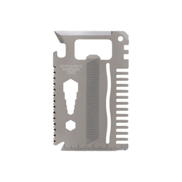 Dodatni opis: Gentlemen s Hardware fantastičan multifunkcionalni alat u obliku kartice koji je praktičan funkcionalan i zahvaljujući kompaktnom dizajnu možete ga nositi sa sobom svuda. Oblika i veličine kreditne kartice - savršeno odgovara svakom novčaniku a u sebi ima moć 15 pouzdanih funkcionalnih i svakodnevnih pomagala: otvarač za flaše lenjir oštrica noža šrafcigere ključeve ključeve za matice testericu sekač kutija... Pored ovih standardnih i neophodnih alata u ne tako standardnom pakovanju ova alatka sadrži u sebi i dva neophodna dodatka modernoj gospodi: stalak za telefon (samo ubacite platnu karticu) i češalj za brkove i bradu. Vrhunskog kvaliteta od nerđajučeg čelika sa titanijumskim finišom radi maksimalne izdržljivosti i ugraviranim logoom ovog fantastičnog brenda a upakovan u prelepu retro poklon limenu kutiju ovaj alat je savršen poklon za svakog vama dragog muškarca. Multifunkcionalni alat kartica - Gentlemen s Hardware je alat koji se savršeno uklapa u zahteve modernog života savremenog džentlmena