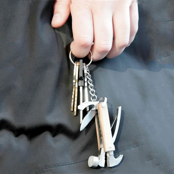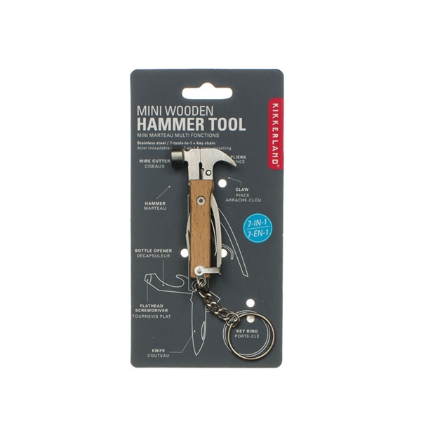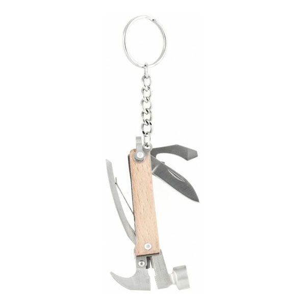 Dodatni opis: Multifunkcionalni alat čekić je ujedno i privezak za ključeve. Napravljen je od nerđajujeg čelika i sastoji se od 7 mini alatki.Multifunkcionalni alat čekić otvarač za flaše nožić klešta za vađenje eksera ravan šrafciger nož za žicu i obična klešta. Alat ima sigurnosni obruč koji ne dozvoljava da se alatke nekontrolisano oslobode iz okvira. Vrlo je praktičan za sitne popravke. Dizajniran je da bude praktičan funkcionalan ali istovremeno i elegantan. Ima drvenu oblogu i izgleda kao mali drveni čekić. Svaka alatka se zasebno može izvući iz okvira. Zgodan je za kampovanja izlete...i prosto da Vam je uvek pri ruci.