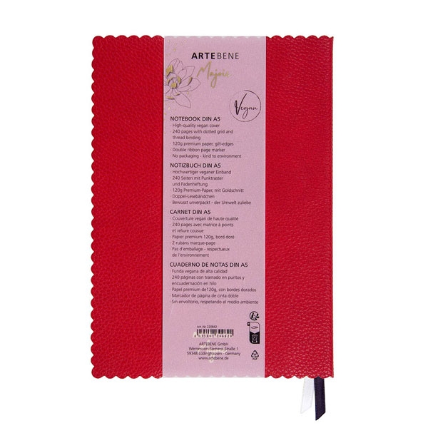 Materijal: Veganski meki povez u svetlo crvenoj boji/Posebno kvalitetan papir koji se ne prozire