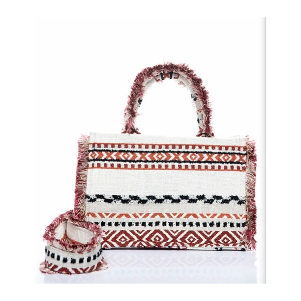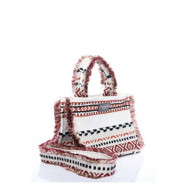 Dodatni opis: Bezvremenska lepota bezbrižna elegancija. SORENA torbe otelotvoruju suštinu moderne sofisticiranosti — gde se zanatstvo susreće sa svakodnevnom svestranošću. Ručno izrađene od naših prepoznatljivih tkanina i završene luksuznom crvenom somotskom postavom svaki komad je jedinstven praktičan i dizajniran da se neprimetno ističe. Od dana do noći nosi ne samo vaše neophodne stvari već i vaše samopouzdanje.